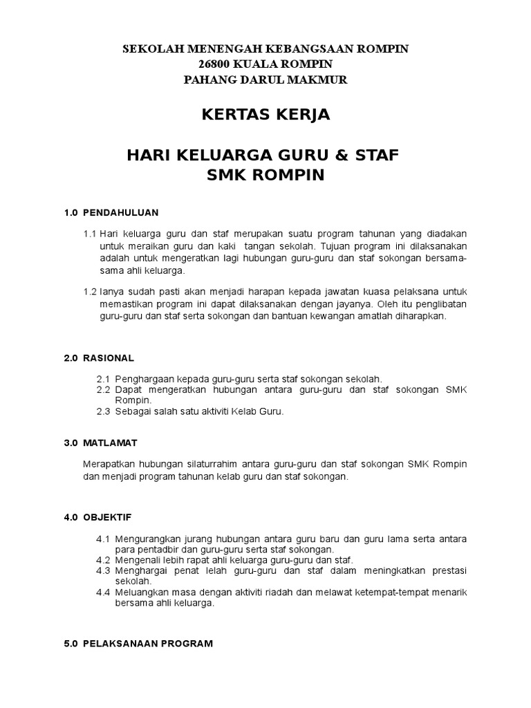 Contoh Kertas Kerja Program Hari Keluarga Dan Sukaneka Otosection